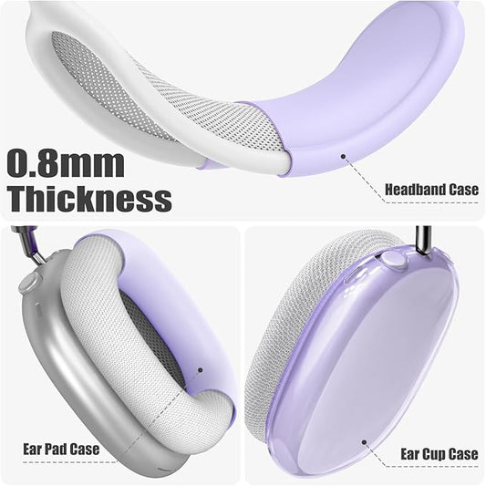 4 in 1 Set for AirPod Max Case Cover, Anti-Scratch Ear Pad Covers/Ear Cups Cover/Headband Cover, AirPod Max Covers Accessories for Apple AirPods Max (2020 Lightning /2024 USB-C)-Clear Purple