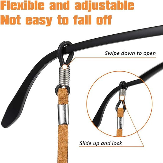4pcs Eyeglass Strap, Leather Eye Glasses Strap String Adjustable Eyeglass Chain Lanyard Eyewear Retainers, Sport Sunglass Glasses Holder Strap for Men Women,with Eyeglasses Cleaning Cloth