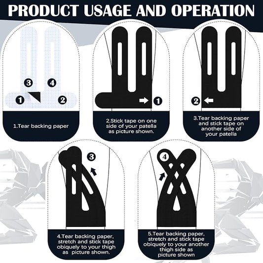 50 Pcs Precut Kinesiology Tape for Knees Pain Relief Elastic Waterproof Athletic Knee Tape for Support Stability Sports(Black)