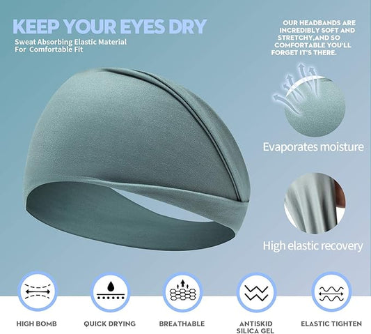 8 Pieces Sweatbands Non Slip Headbands Stretchy Running Sports Sweatbands Workout Headband Grip Silicone Yoga Hair Band Elastic Exercise Hair Wrap for Women Men