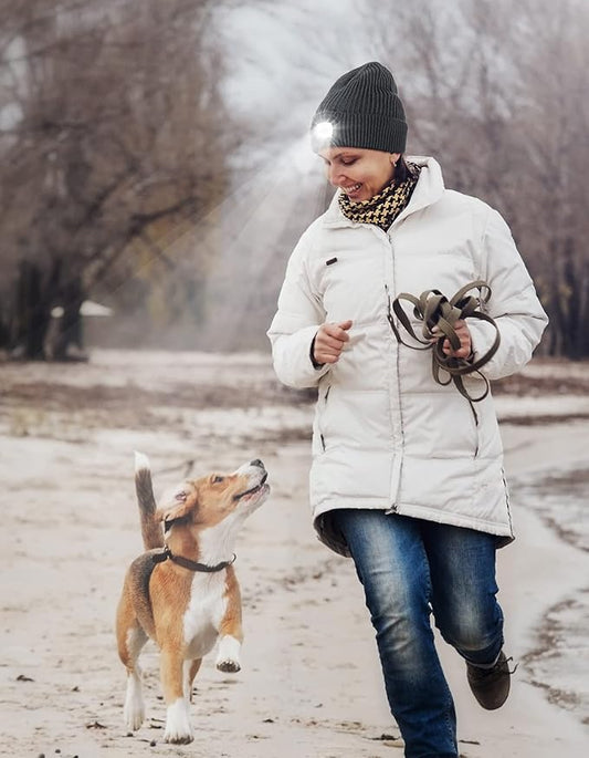 YunTuo LED Beanie with The Light, Unisex USB Rechargeable Headlamp Winter Knitted Cap Gifts for Men Dad Husband Him