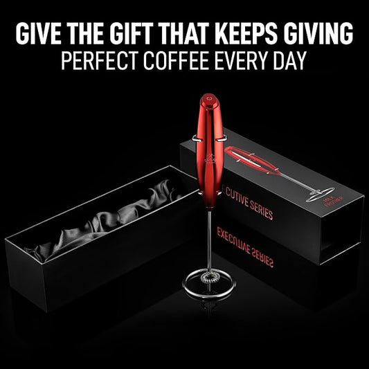 Zulay Executive Series Ultra Premium Gift Milk Frother For Coffee with Deluxe, Radiant Finish - Coffee Frother Handheld Foam Maker - Electric Milk Frother Handheld For Lattes Premium UV Red