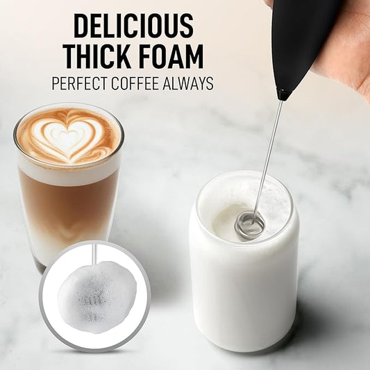 Zulay Kitchen Powerful Milk Frother Wand - Ultra Fast Handheld Drink Mixer - Electric Whisk Foam Maker for Coffee, Lattes, Cappuccino, Frappe, Matcha, Hot Chocolate & Coffee Creamer - Milk Boss Black