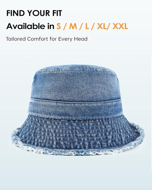 Zylioo XXL XL L M Denim Bucket Sun Hat,Oversized Jean Fisherman Hats,Adjustable Packable Summer Travel Hats