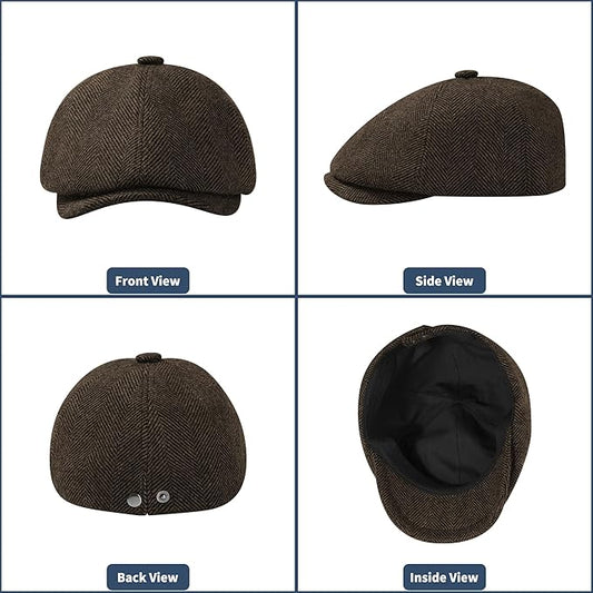 VOBOOM Men's Herringbone Flat Ivy Newsboy Hat Wool Blend Gatsby Cabbie Cap
