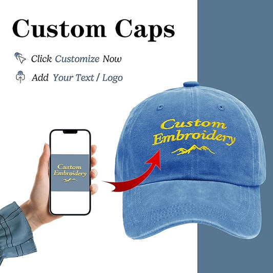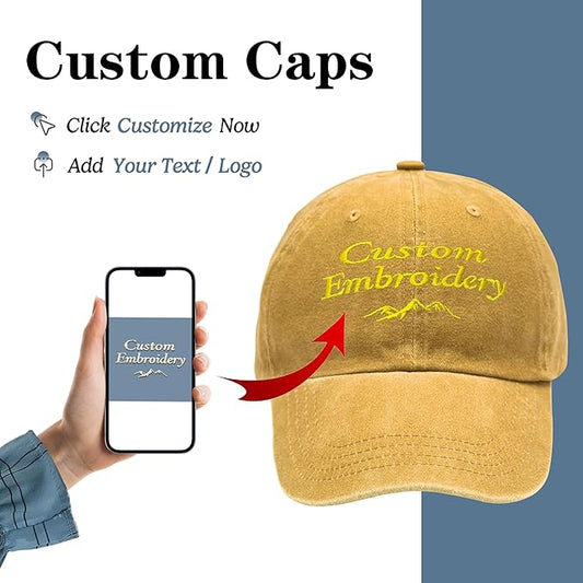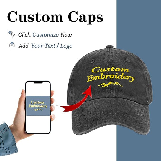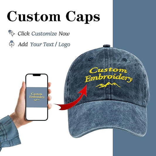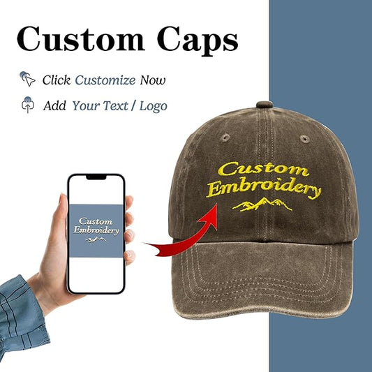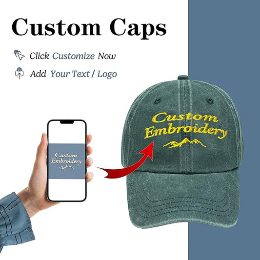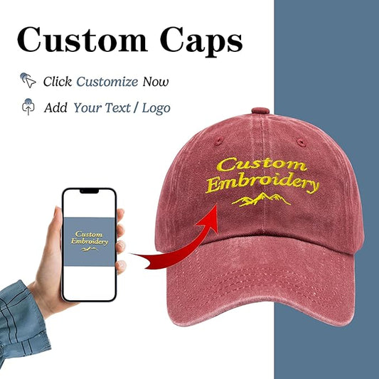 Custom Embroidered Hats, Personalized Embroidery Baseball Caps Add Your Logo Text Gift for Men Women