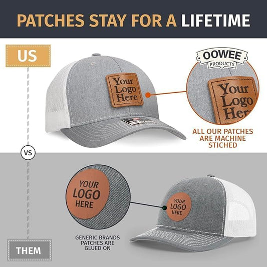 Oowee Products Custom Leather Patch Richardson 112 Trucker Hat, Cotton/Polyester Mesh, Snapback Closure, Handcrafted in USA