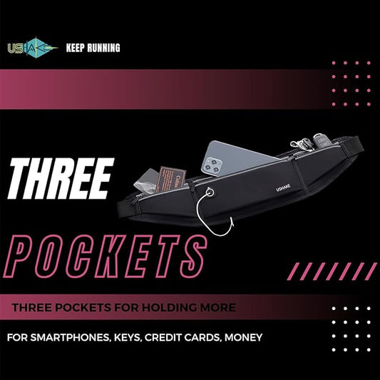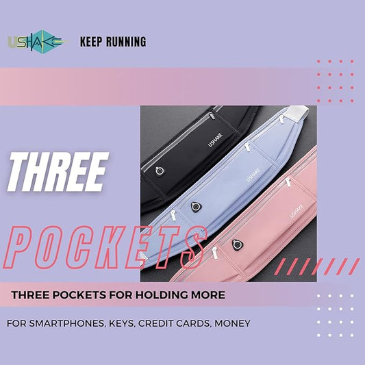 USHAKE Slim Running Belt, Workout Fanny Pack for Men Women,Exercise Waist Pack for Apple iPhone Holder, Runner Belt for Running Walking Cycling Camping Gym