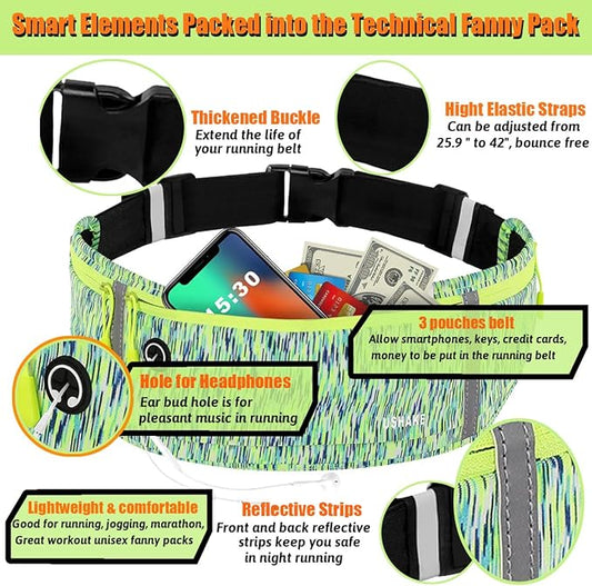 WATERFLY Running Belt Fanny Pack: Slim Waist Bag for Men Women, Workout Fitness Phone Holder for Exercise Marathon Jogging-Fluorescent Green