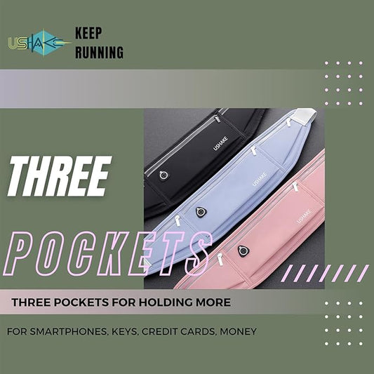 USHAKE Slim Running Belt, Workout Fanny Pack for Men Women,Exercise Waist Pack for Apple iPhone Holder, Runner Belt for Running Walking Cycling Camping Gym