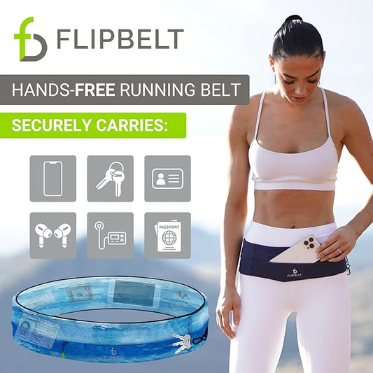 FlipBelt Lightweight Running Air Belt, Fitness and Running Fanny Pack for Women and Men, Non Chafing Waist Band Pack for Phone, Keys, Money, Moisture Wicking Storage Belt, USA Company