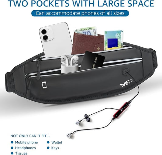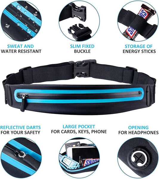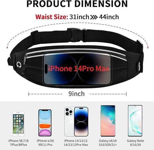 Slim Running Belt Fanny Pack for Men Women, Running Phone Holder Runners Pouch Waist Pack for Workout, Money Belt, Running Gear Accessories [Fits ALL Phones]