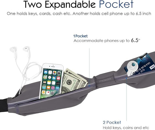 MoKo Sports Running Belt,Outdoor Dual Pouch Sweatproof Reflective Slim Waist Pack,Fitness Workout Belt Fanny Pack Compatible with iPhone 11/11 Pro Max/X/Xr/Xs Max/8/7, Galaxy Note 10/10 Plus, S20/S10