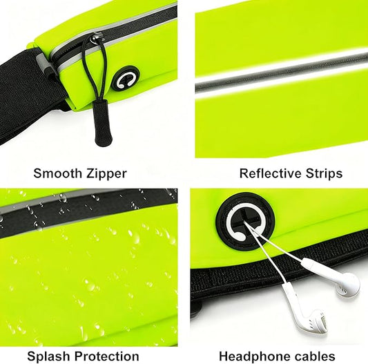 Slim Running Belt For Men and Women Waist Fanny Pack Phone Holder Pouch Bag Reflective Zipper Pocket Workout Cycling Fitness Kelly Green