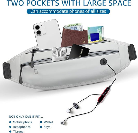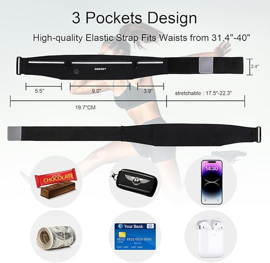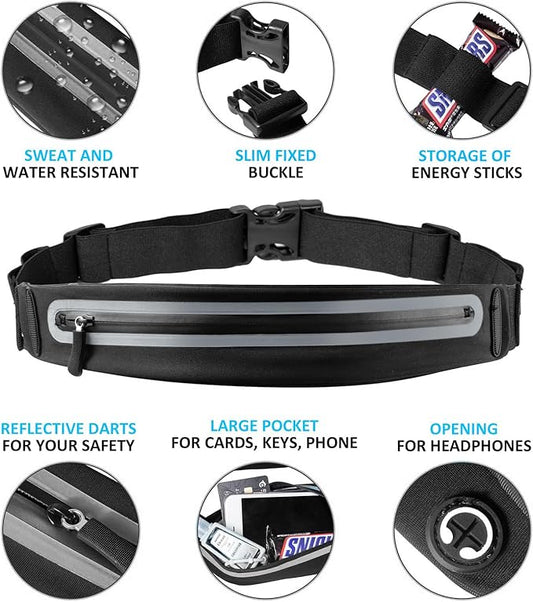 Slim Running Belt For Men and Women Waist Fanny Pack Phone Holder Pouch Bag Reflective Zipper Pocket Workout Cycling Fitness