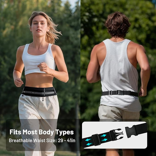 MIER Running Belt for Men Women Slim Fanny Pack Phone Holder Jogging Pouch with Marathon Bib Clip Runner Waist Pack for Walking Cycling for Keys, Cards & Essentials (Black)