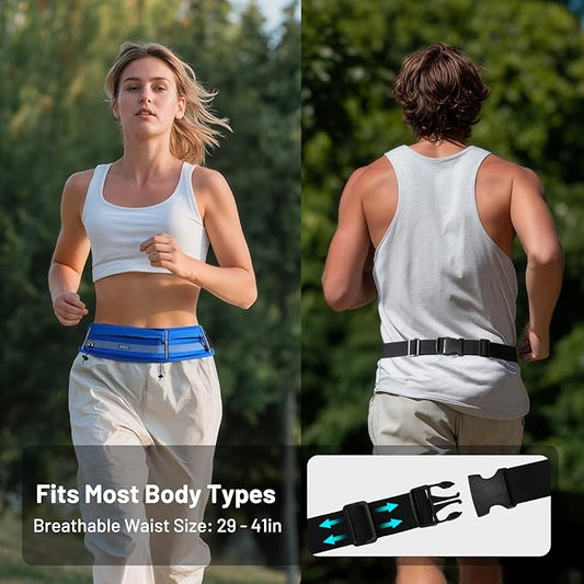 MIER Running Belt for Men Women Slim Fanny Pack Phone Holder Jogging Pouch with Marathon Bib Clip Runner Waist Pack for Walking Cycling for Keys, Cards & Essentials (Navy)