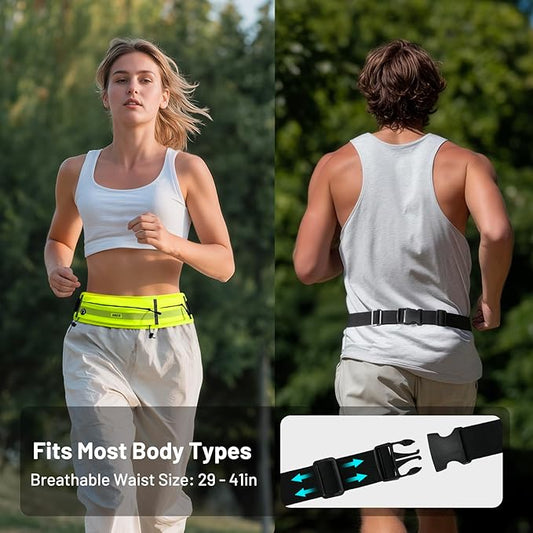 MIER Running Belt for Men Women Slim Fanny Pack Phone Holder Jogging Pouch with Marathon Bib Clip Runner Waist Pack for Walking Cycling for Keys, Cards & Essentials (Neon Yellow)