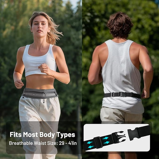 MIER Running Belt for Men Women Slim Fanny Pack Phone Holder Jogging Pouch with Marathon Bib Clip Runner Waist Pack for Walking Cycling for Keys, Cards & Essentials (Gray)