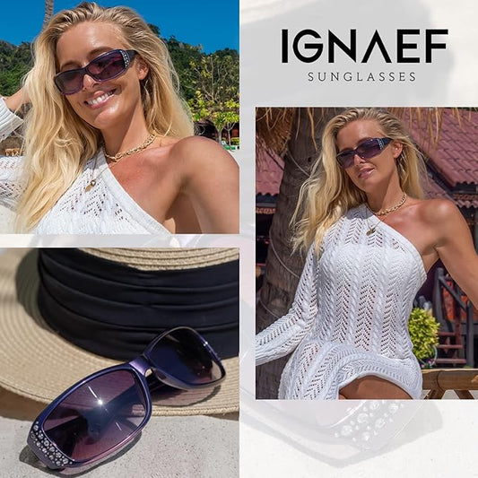 IGnaef Polarized Sunglasses for Women, Rhinestone Women Sunglasses UV400 Protection for Driving/Fishing/Shopping