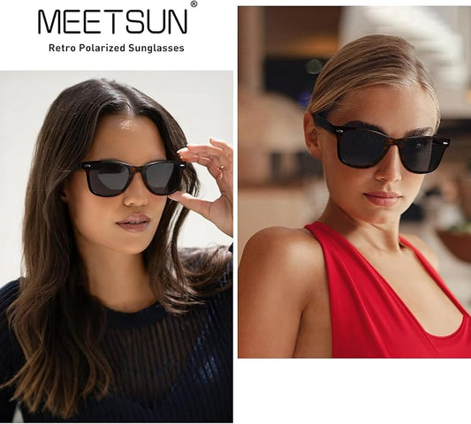 MEETSUN Polarized Sunglasses for Women Men Classic Retro Square Frame Driving Trendy Sun Glasses UV Protection