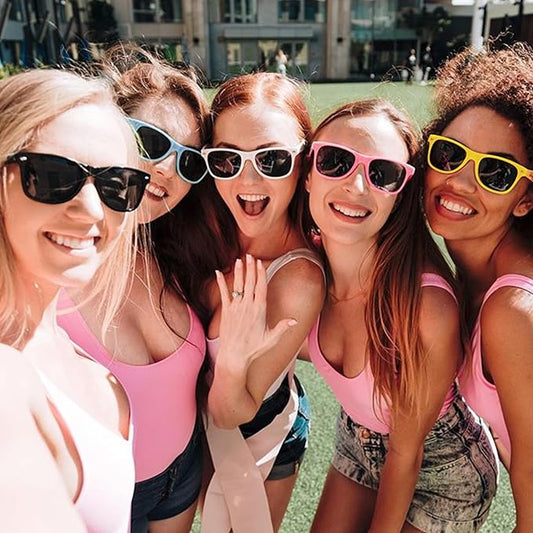 SUNOVELTIES 12/24 Pack Neon Party Sunglasses Mirrored/Jelly Lens Bulk Glasses Horn Rimmed Eyewear for Men Women