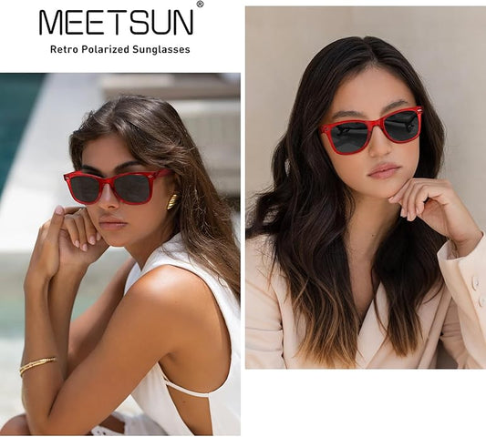 MEETSUN Polarized Sunglasses for Women Men Classic Retro Square Frame Driving Trendy Sun Glasses UV Protection