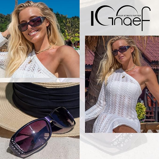 IGnaef Polarized Sunglasses for Women, Rhinestone Women Sunglasses UV400 Protection for Driving/Fishing/Shopping