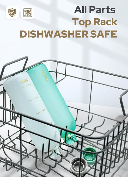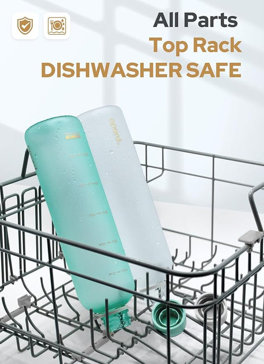 Opard Slim Water Bottle 32oz, Dishwasher Safe Plastic Water Bottle BPA-Free, Leakproof Screw Top, Forest Green, Reusable for Travel School Sport Gym Hiking