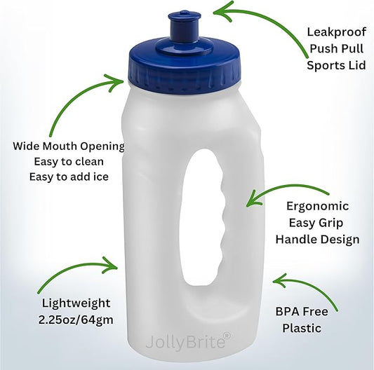 Handheld Running Water Bottle 17.6oz Leakproof Sports Push Pull Lid, Jogger Bottles for Runners, Lightweight Easy-Grip Water Bottle for Running and Fitness. 2 Pack Black and Navy Lids
