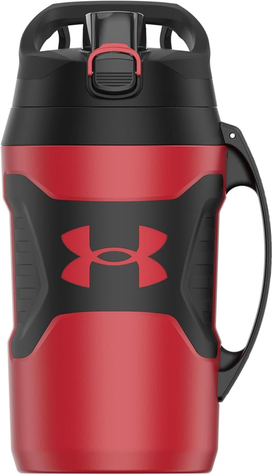 Under Armour Half Gallon Water Bottle Insulated, 64oz Insulated Water Bottle with Handle, Fence Hook, Leak Resistant, for Baseball, Football & More, Red/Black