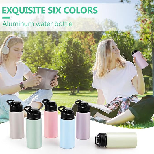 Domensi Aluminum Water Bottle Bulk Reusable Water Bottle, Lightweight Easy Carry Leakproof with Snap Lid Travel Bottles, for Gym Outdoor Sports Cycling Camping Fishing(25oz, 18 Pack)