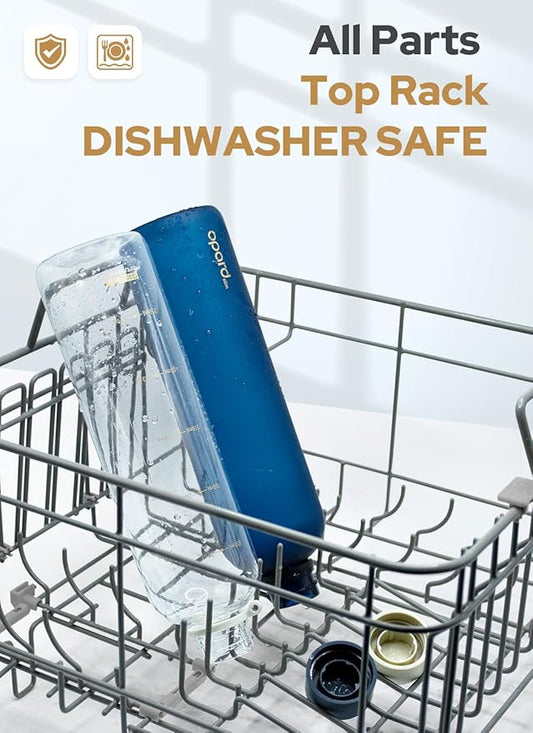 Opard Slim Water Bottle 32oz, Dishwasher Safe Plastic Water Bottle BPA-Free, Leakproof Screw Top, Clear Cream, Reusable for Travel School Sport Gym Hiking