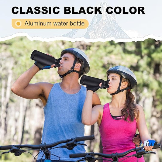 Domensi 30 Pack Aluminum Water Bottle Bulk Reusable Water Bottle, Lightweight Easy Carry Leakproof with Snap Lid Travel Bottles, for Gym Outdoor Sports Cycling Camping Fishing (17oz,Black)