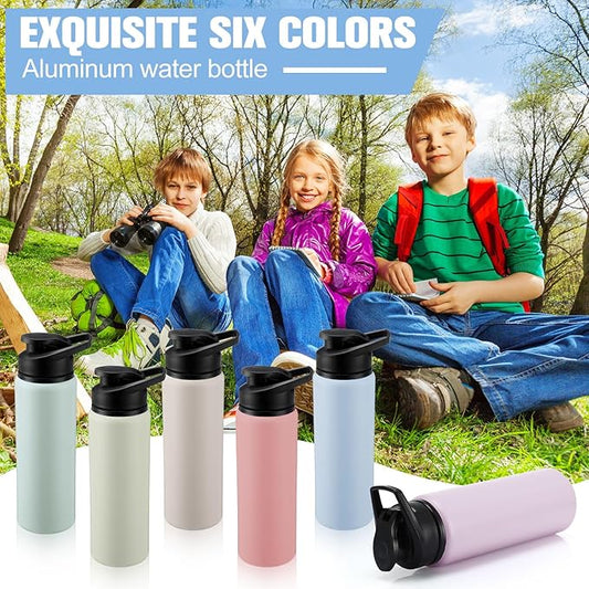 Domensi Aluminum Water Bottle Bulk Reusable Water Bottle, Lightweight Easy Carry Leakproof with Snap Lid Travel Bottles, for Gym Outdoor Sports Cycling Camping Fishing(25oz, 24 Pack)
