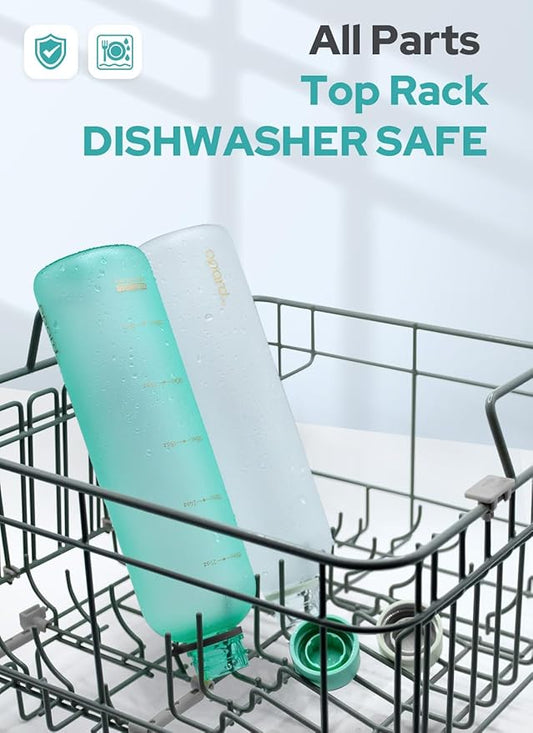 Opard Slim Water Bottle 32oz, Dishwasher Safe Plastic Water Bottle BPA-Free, Leakproof Screw Top,Aqua Green, Reusable for Travel School Sport Gym Hiking
