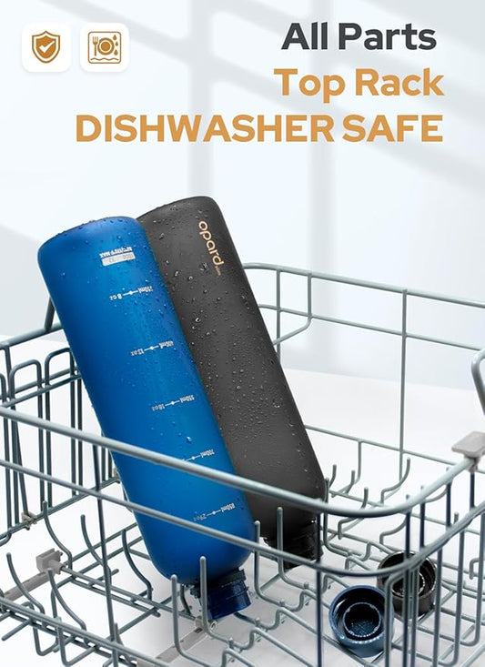 Opard Slim Water Bottle 32oz, Dishwasher Safe Plastic Water Bottle BPA-Free, Leakproof Screw Top, Charcoal Black, Reusable for Travel School Sport Gym Hiking