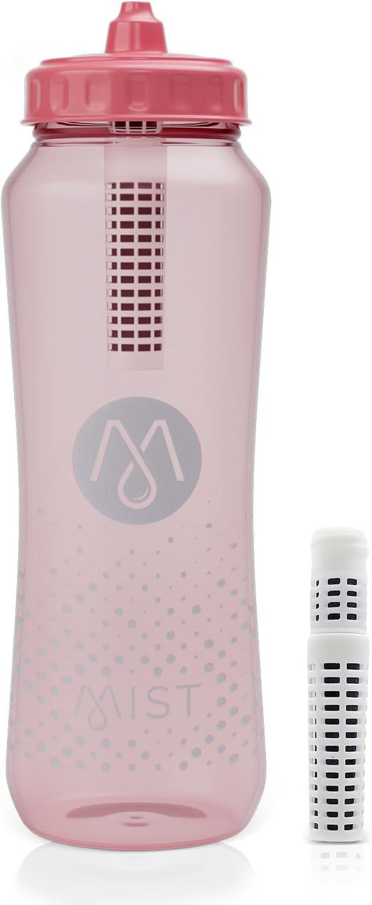 Mist Sports Squeeze Water Bottle with Built-In Filter for Pure Water, Easy Grip Squeeze Water Bottles Sports Quality, Leak Proof & BPA Free Athletic Water Bottle Squirt Top, Peachy Pink