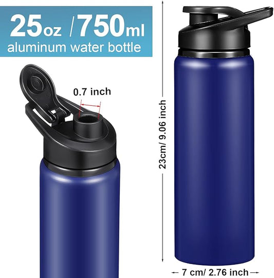 CHENGU 10 Pcs 25oz Reusable Aluminum Water Bottle Bulk Lightweight Outdoor Sports Water Bottles Easy Carry Leak Proof for Travel Gym Camping Hiking Fishing, Snap Lid (Blue)