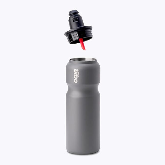 tiibo Vacuum Insulated Stainless Steel Bike Water Bottle, Double Wall, No-Squeeze, Fast Flow Sport Nozzle, Designed for Cycling, Biking, Fitness & Sports, Fits Most Bike Cages (Gray, 17OZ)
