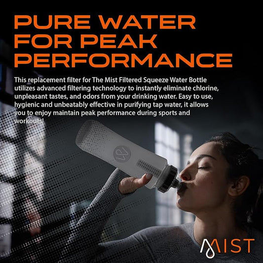 Mist Sports Squeeze Water Bottle Replacement Filter, Replacement Filter Lasts 32 Gallons (2 Months) for Contaminant Free and Pure Water - No Lugging Disposable Bottles, 3-pack