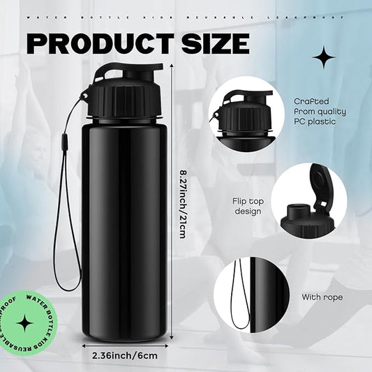Maxcheck 30 Pieces Water Bottle Bulk 17 oz Plastic Sports Water Bottles Bulk with Handle Strap Lightweight Leakproof Drink Flip Top for Adults Fit Gym(Dark Style,Black)