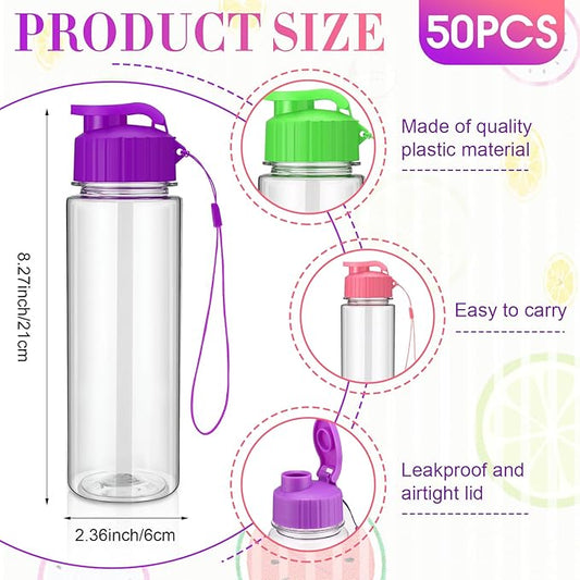 Domensi 50 Pieces Plastic Water Bottle Bulk 17 oz Sports Adults Reusable Large Water Bottles with Leak Proof Flip Top for Adults Fitness(Multicolor)