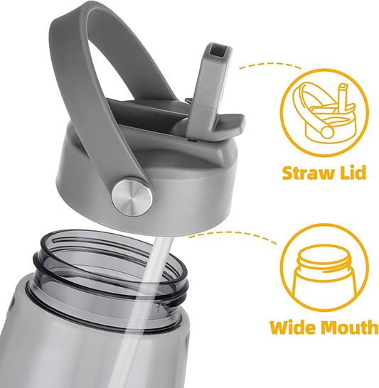OLDLEY 32 oz Water Bottle with Straw, Leakproof Sports Water Bottle with Carry Strap, BPA-Free Large Water Bottles for Home,Travel, School, Outdoors, Gym, Tritan, Gray