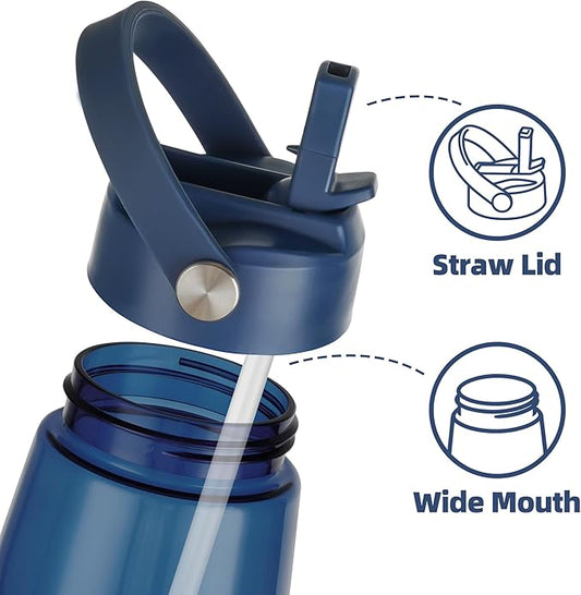 OLDLEY 32 oz Water Bottle with Straw, Leakproof Sports Water Bottle with Carry Strap, BPA-Free Large Water Bottles for Home,Travel, School, Outdoors, Gym, Tritan, Navy Blue