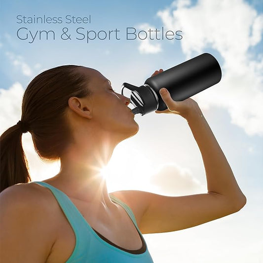 SIPX™ 32 oz Insulated Water Bottle with 3 Lids – Leakproof Stainless Steel, Triple Insulated – Cold 24 Hours/Hot 12 Hours – Durable Bottle for School, Gym, Travel – Black