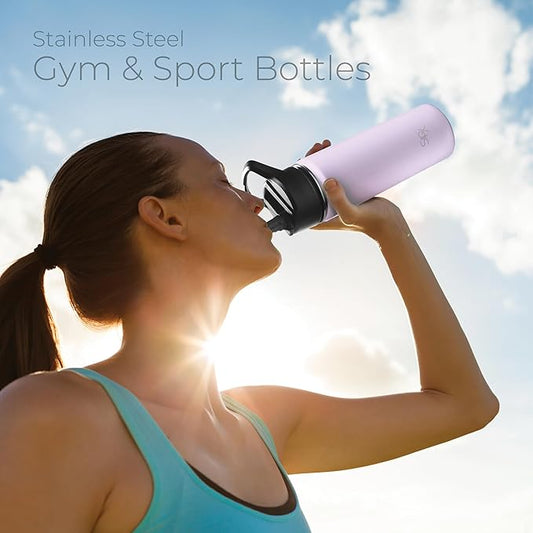 SipX™ 25 oz Insulated Water Bottle with 3 Lids – Leakproof Stainless Steel, Triple Insulated – Cold 24 Hours/Hot 12 Hours – Durable Bottle for School, Gym, Travel – Stainless
