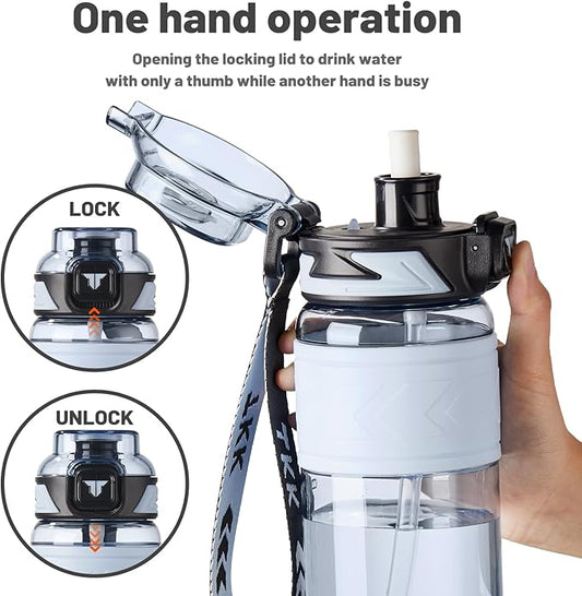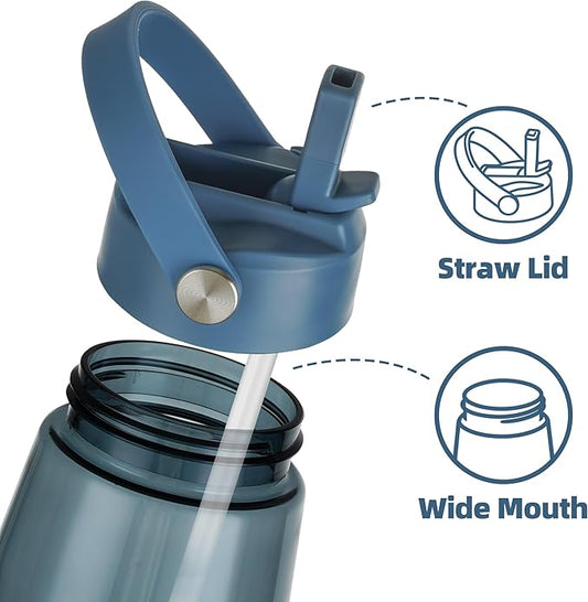 TKK Sports Water Bottles with Removable Straw 34 oz Leak-proof Flip Top Lid BPA Free Tritan Bottles with Strap for School, Fitness, Gym, Outdoor, Blue