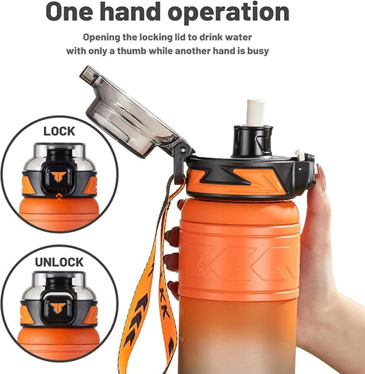 TKK Sports Water Bottles with Removable Straw 29 oz Leak-proof Flip Top Lid BPA Free Tritan Bottles with Strap for School, Fitness, Gym, Outdoor, Orange-Black