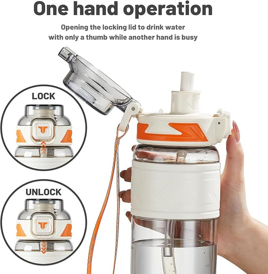 TKK Sports Water Bottles with Removable Straw 34 oz Leak-proof Flip Top Lid BPA Free Tritan Bottles with Strap for School, Fitness, Gym, Outdoor, White